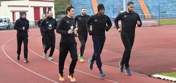 Il en a fallu, du mental, aux Rouge et Noir, ce mercredi matin, pour boucler les 2×15’ de piste prévu par le staff maison (Stefanovic, Degouy et Hager) au terme de la séance de reprise qui avait déjà été agrémentée d’un réveil musculaire, de gainage et d’une bonne grosse séance de musculation. La difficulté, sur les visages, se lisait en effet sans difficulté dans les ultimes minutes d’efforts produits par les actuels 10e du championnat. Pas en raison de kilos superflus hérités des fêtes puisque tout le monde avait la ligne, mais il faut dire que le mordant du froid était particulièrement rude sur le tartan du stade Clerville, même en fin de matinée. Léo Martinez en tête, les pensionnaires de Delaune se sont donc bien dépouillés pour cette reprise qui, après quasiment un mois de travail, conduira à la réception de Créteil pour la 14e journée de D1. Un lointain objectif pour le coach, Rastko Stefanovic, qui ne veut pas brûler les étapes : « Créteil, c’est loin. On sait que l’on va reprendre avec eux mais il faut d’abord effectuer tout le travail de fond de cette préparation. On a plusieurs matchs amicaux à disputer avant, pour prendre de la confiance, travailler de nouvelles choses. On va d’abord se concentrer sur ça. » À raison. Avec un groupe quasi complet (Chipurin avec la Russie, Cauwenberghs avec la Belgique, Prandi avec France U19), les Val-de-Marnais ont toutes les cartes en main pour faire fructifier une première partie saison encourageante.
